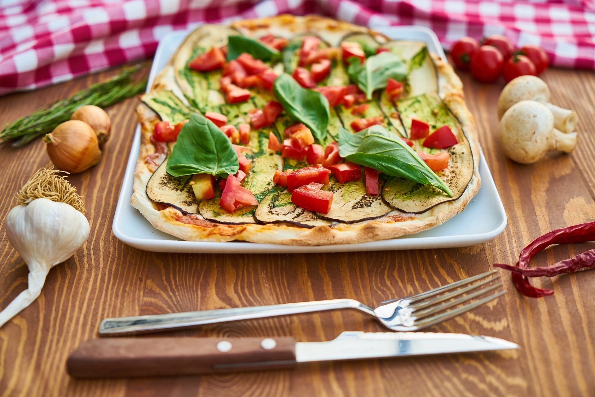 sos pomidorowy, ser, szynka, pieczarki, papryka, czosnek -